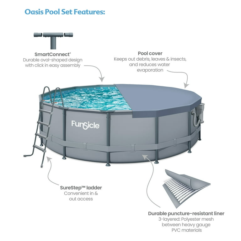Funsicle 14 Ft Oasis Round Above Ground Metal Frame Swimming Pool Includes Skimmerplus Pump Age 6 Up Walmart Com